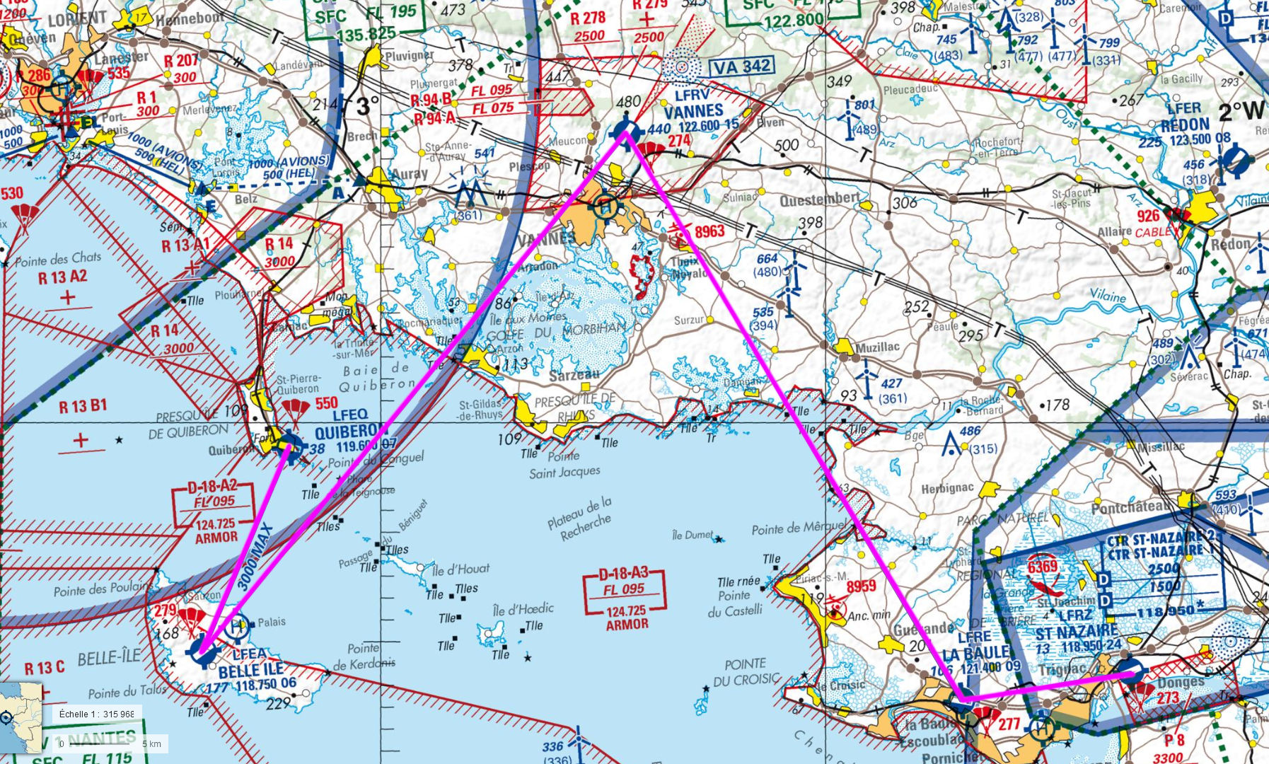 Belle-Île fait sans doute partie de ces lieux magiques que tout pilote rêve de survoler. Partant de Quiberon, le détour en vaut la chandelle avant de rejoindre Vannes. Il nous permettra d'admirer les paysages bretons incroyables tels que l'île d'Houat ou le Golfe du Morbihan. Puis, il suffira de longer la côte pour trouver La Baule et Saint-Nazaire, porte de la Loire-Atlantique qui sera la suite de notre voyage !